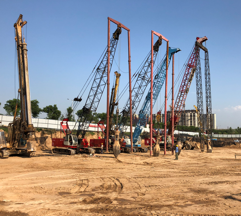 大禹金色華苑位于三門峽中心大道站西側(cè),由8棟高層、3棟商業(yè)用房和地下車庫組成,結(jié)構(gòu)類型分別為剪力墻、框架,基礎(chǔ)埋深-6.2m,要求處理后地基承載力高層建筑為350-450Kpa,商業(yè)用房和車庫為220Kpa,地基處理方案為SDDC樁。